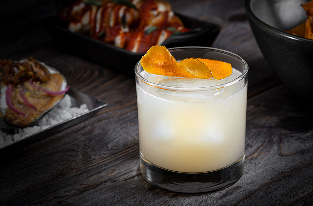 scotch, drambuie, lemon, spiced simple syrup, orange bitters, eggwhite