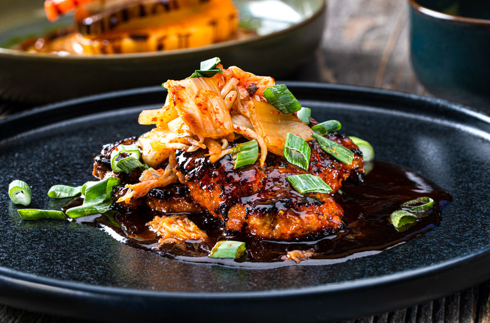 gochujang glaze, kimchi slaw