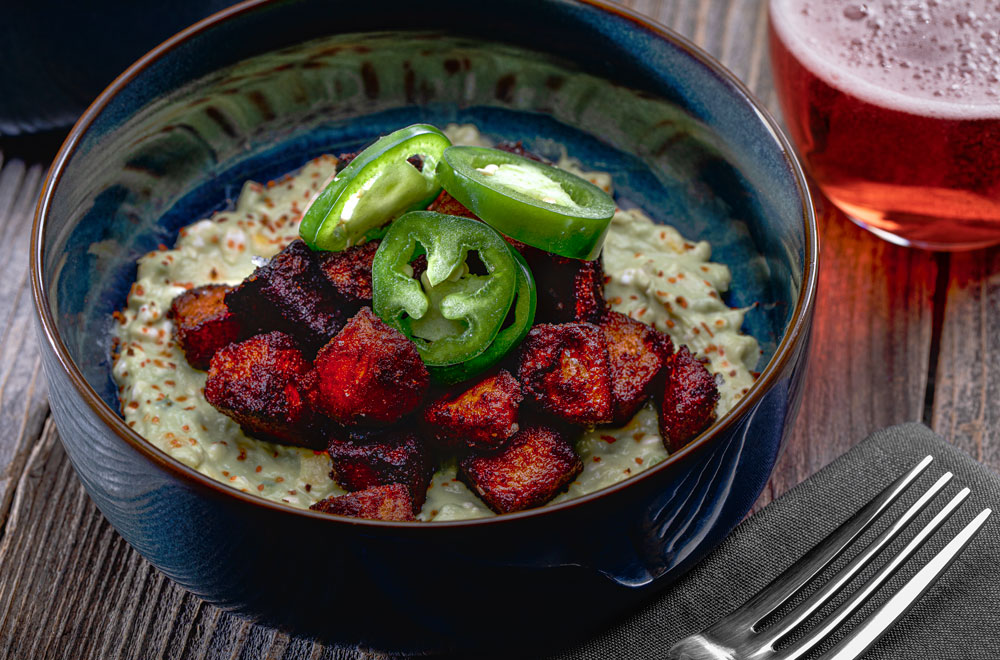 harissa cream, fried olive