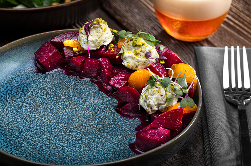 burnt orange vin, goat cheese, pistachio